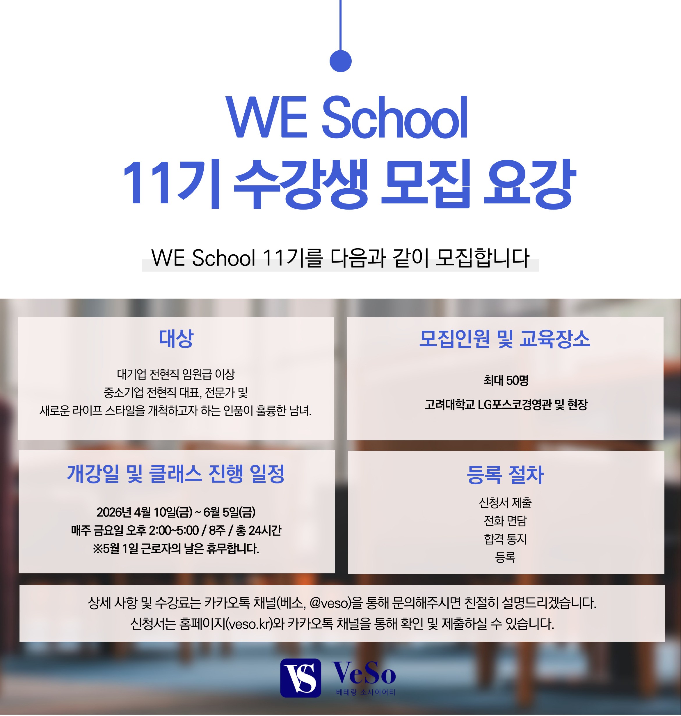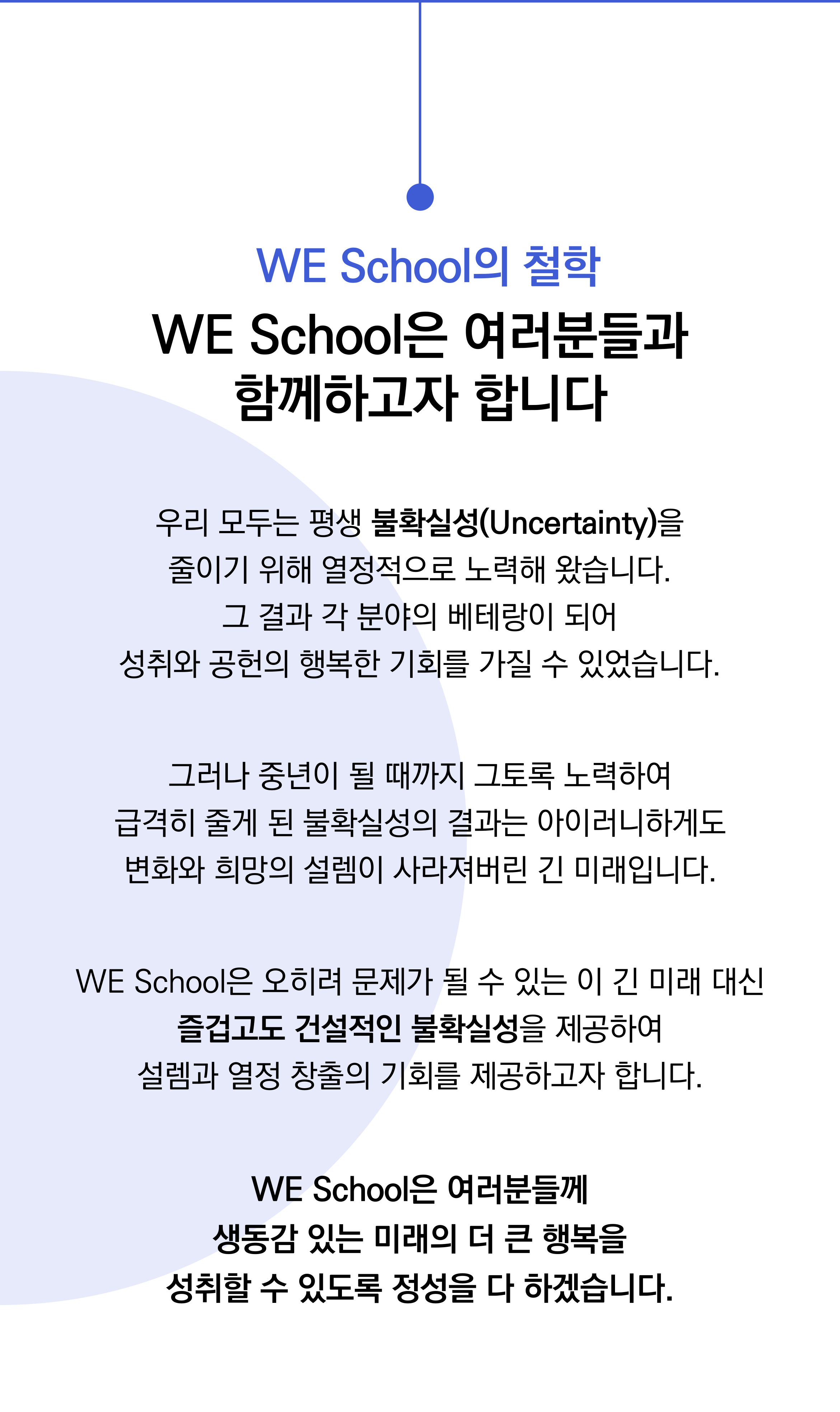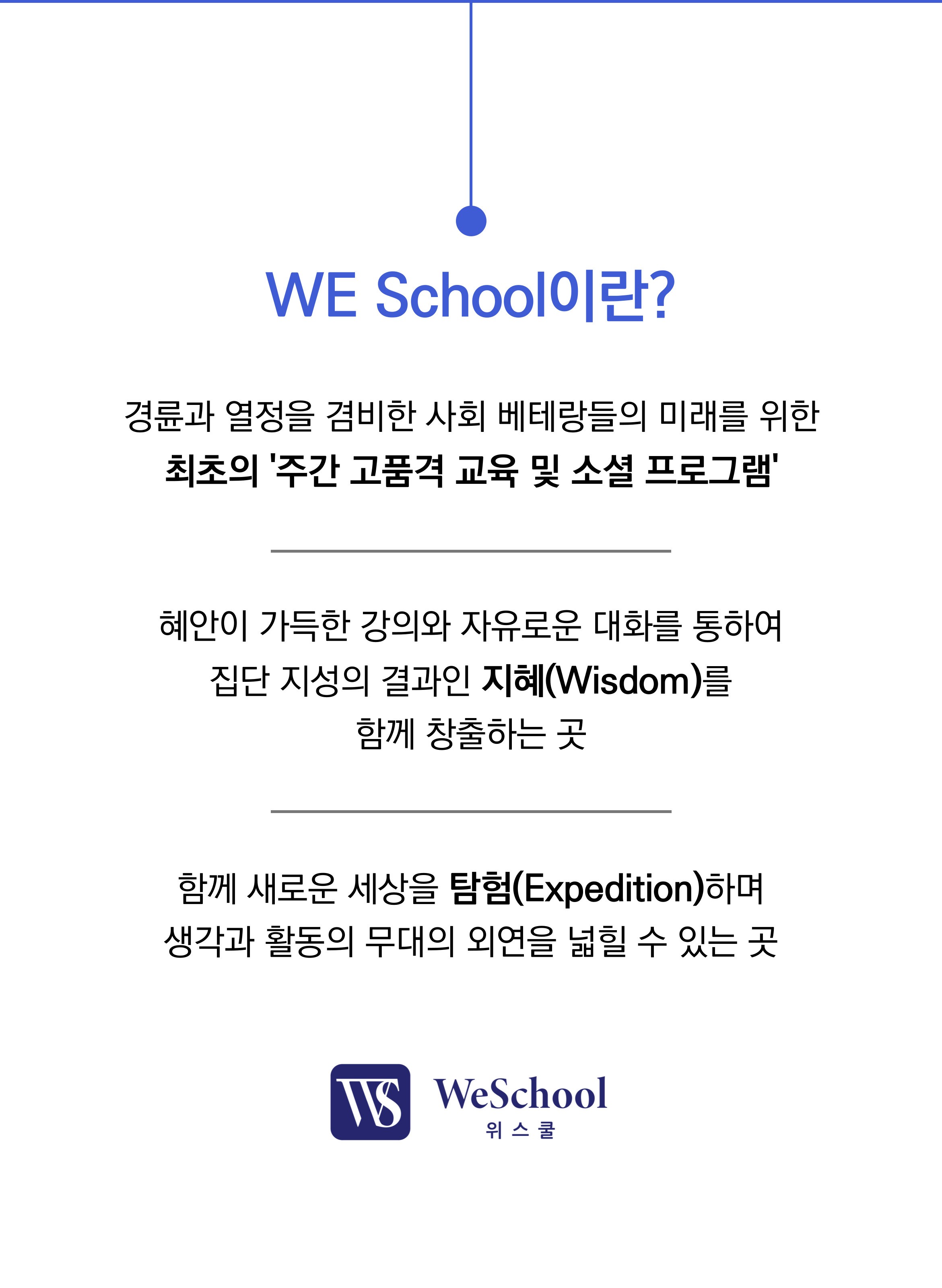 WE School에서 함께 즐거운 라이프스타일을 즐기고자 하시는 분께서는 아래 신청서 링크를 클릭 또는 터치하여 신청서를 작성해주시면 됩니다.