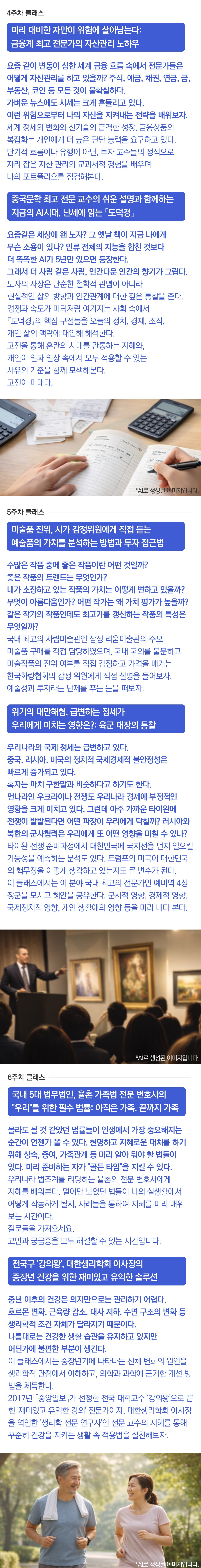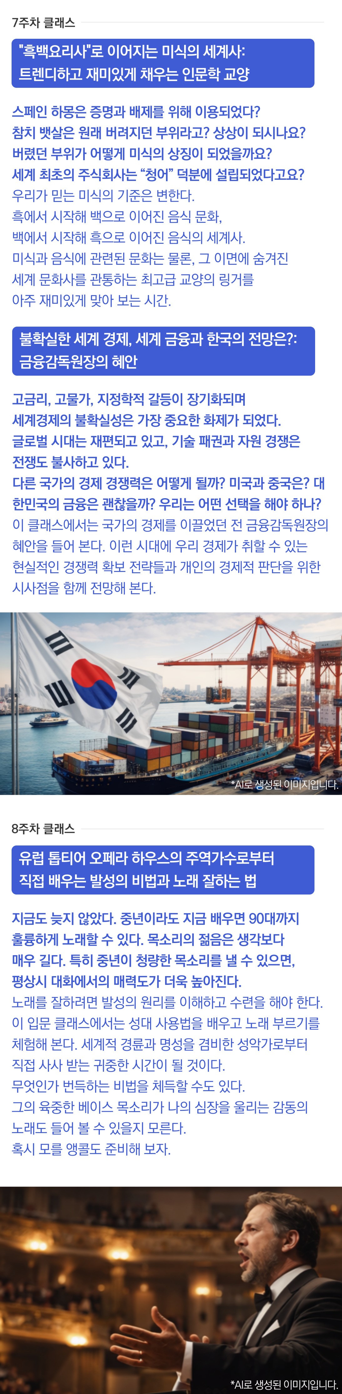 (1주차와 8주차에는 만찬이 예정되어 있습니다)